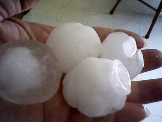 This photo shows hail they picked up at their house! Again - OH MY! Especially considering that according to Gordon, these were not nearly as large as what he had encountered a few miles away on his drive home!